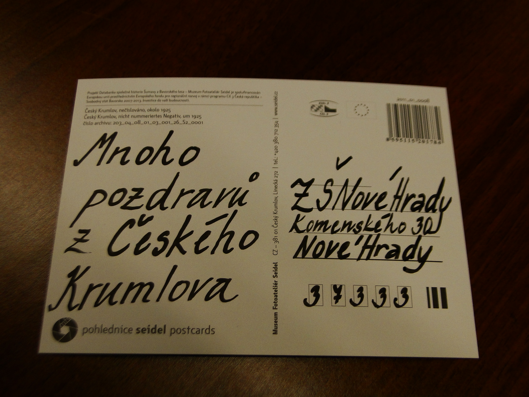 Ve středu 9. října 2013 jsme spolu s 9. třídou vyrazili do Českého Krumlova. Po příjezdu jsme se rozdělili. My (sedmáci) jsme navštívili fotoateliér a muzeum Seidel a deváťáci grafitový důl.