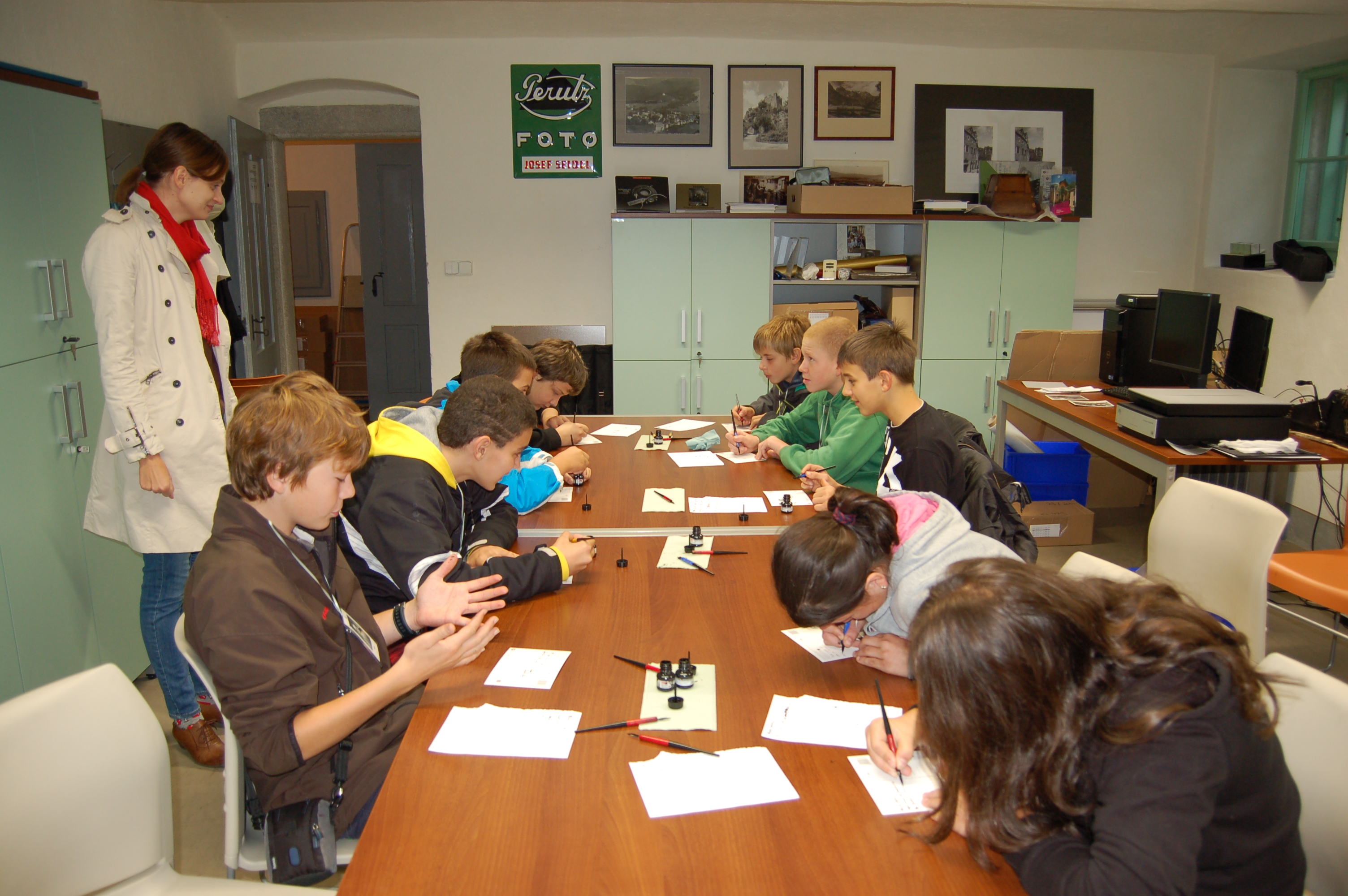 Po příchodu do muzea nás paní průvodkyně vyfotografovala v původním fotoateliéru. Každý z nás poté dostal fotografii udělanou ve starodávném stylu z počátku minulého století. Pak jsme viděli dokument o historii rodiny Seidlů. Pokračovali jsme do černé komory, kde jsme měli možnost vyzkoušet si, jak se v minulosti vyvolávaly fotografie. Paní průvodkyně nám ukázala všechny možné dobové přístroje na kopírování, leštění, lepení starých fotografií. My jsme si vyrobili několik fotogramů. Prohlídka pokračovala návštěvou interiérů ateliéru, viděli jsme dokonce i půdu, kde bylo objeveno 140 000 skleněných desek s negativy, které je dnes možno vidět naskenované na internetu. Na závěr jsme napsali pohlednice redisperem a tuší. Bylo to docela namáhavé a jsme rádi, že dnes takto ve škole už psát nemusíme.
