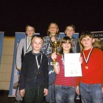 A nyní pár vět k samotnému turnaji, na který jsme jeli autobusem TJ Nové Hrady. V Horní Stropnici přistoupili kamarádi, kteří se rovněž věnují šachové hře. Z Novohradska tak jel do Českých Budějovic na jeden šachový turnaj zatím rekordní počet mladých šachistů – patnáct – pod dohledem tří trenérů. Cesta i začátek turnaje proběhly bez problémů, takže první kola začala podle propozic krátce po deváté hodině. A začaly se dít věci. Během dvou kol se na prvním místě objevilo družstvo ZŠ a MŠ Horní Stropnice A a hned za nimi družstvo ZŠ Nové Hrady. Velmi zkušená družstva našich soupeřů ztrácela body, protože nestačila vzdorovat hráčskému umění našich šachistů. Takový jednoznačný průběh byl až do šestého kola. Hráčům z Horní Stropnice se přestalo dařit, a tak ve vítězném tažení zůstalo naše družstvo osamoceno. Vítězství v šestém a sedmém kole si již nenechalo vzít, a proto diplom za první místo a putovní pohár putoval do Nových Hradů. Únava, protože turnaj skončil krátce před patnáctou hodinou, byla pryč.